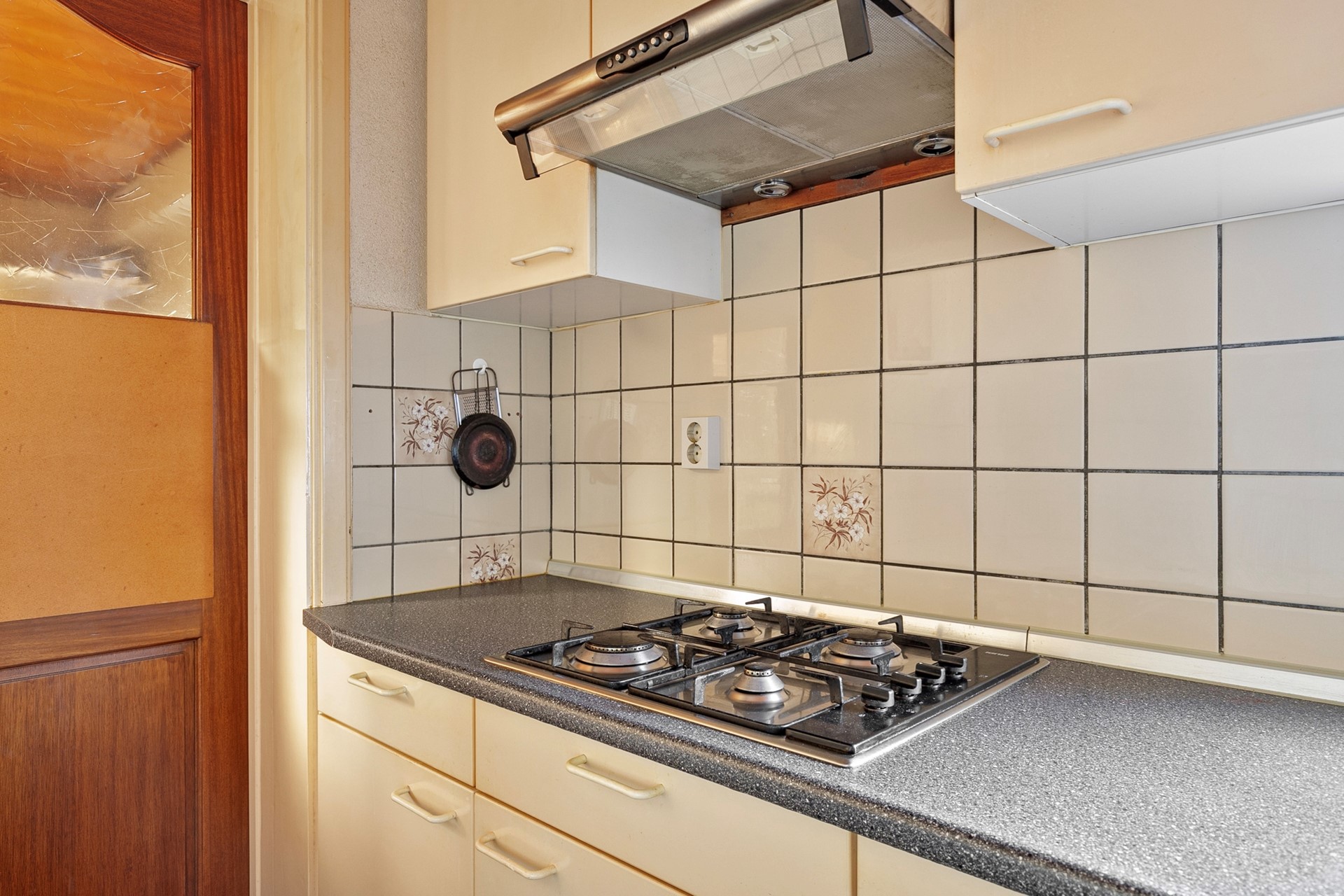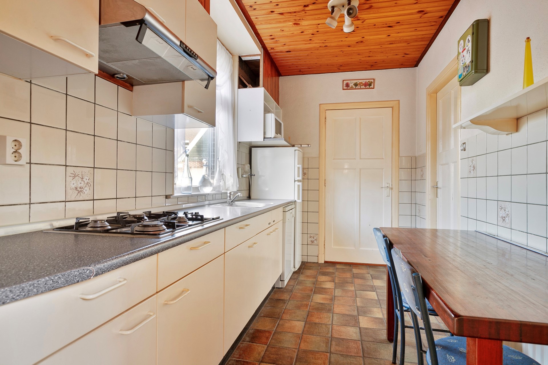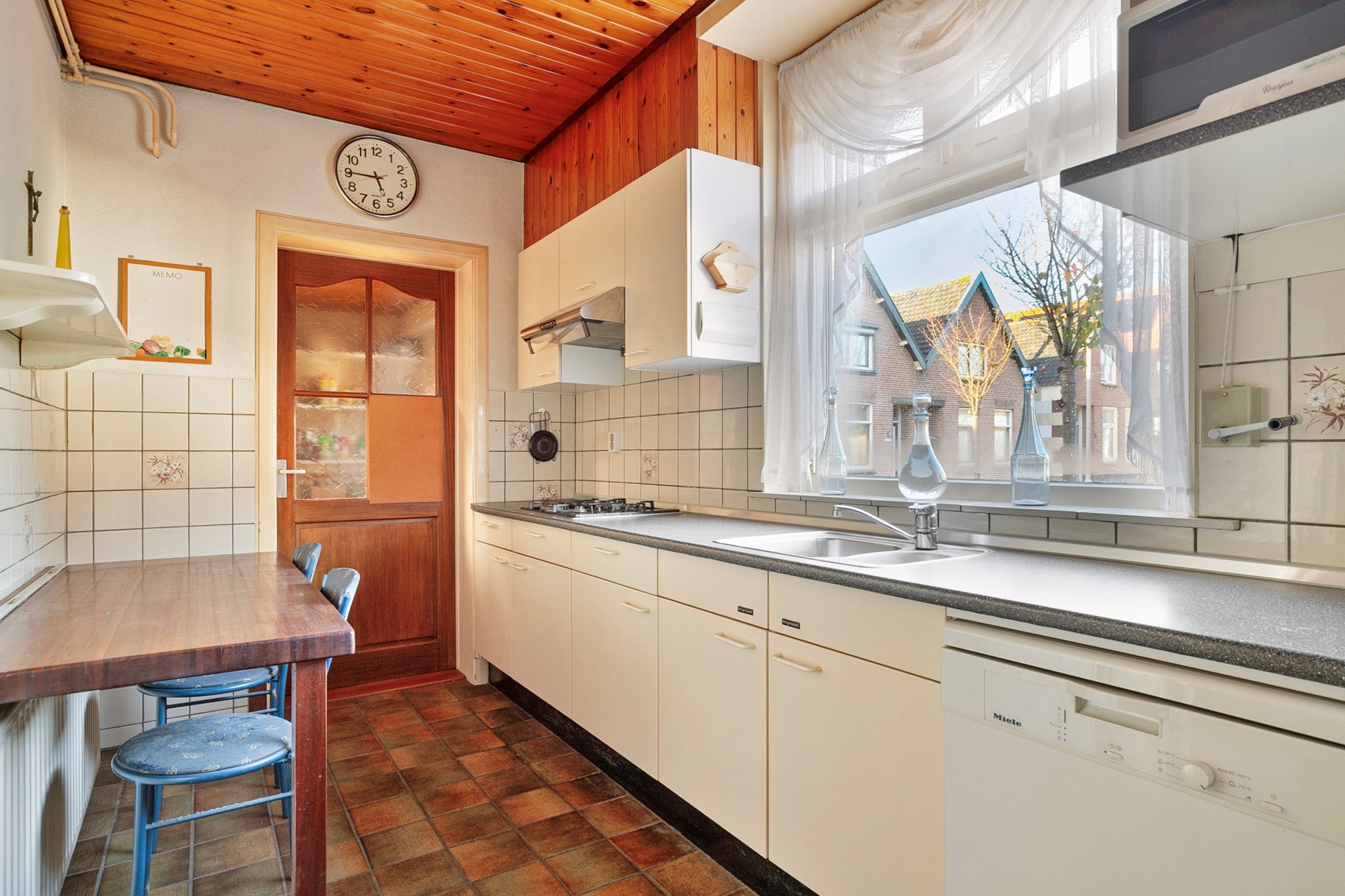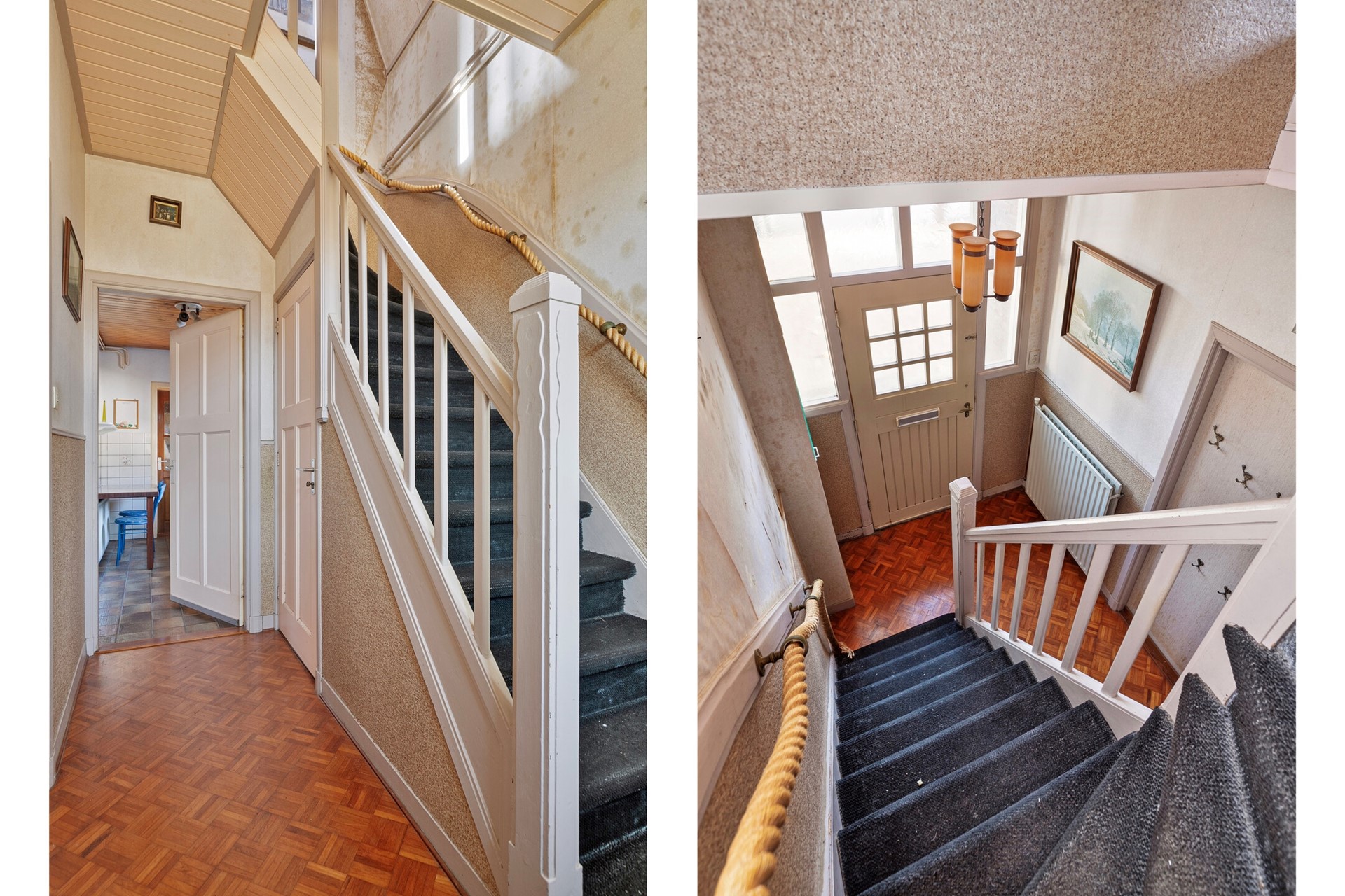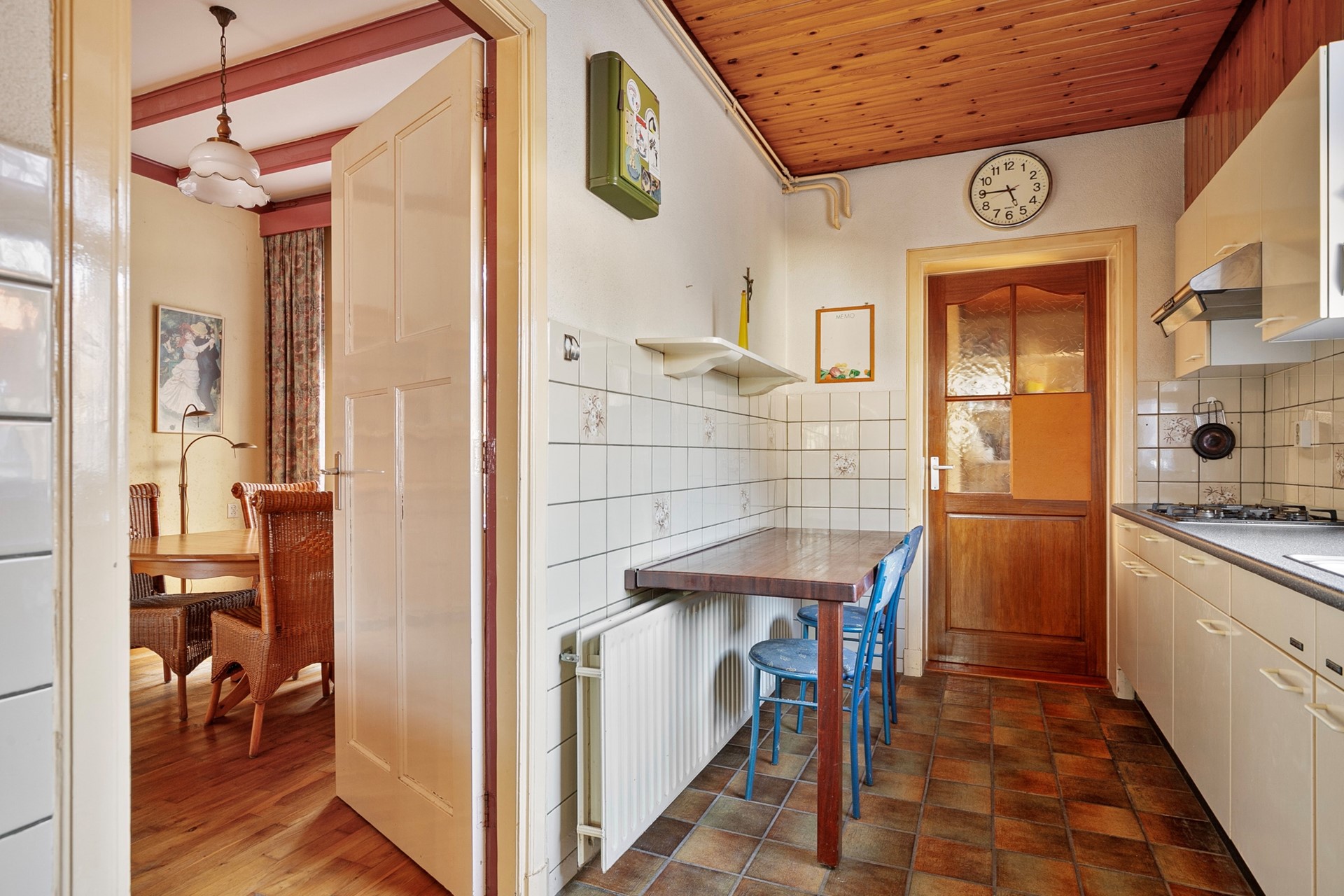 Entree, hal met fraaie trapopgang, meterkast en praktische trapkast. De woonkamer is uitgevoerd met de zithoek aan de voorzijde, deze heeft een fijne lichtinval door de fraaie erker. De eethoek bevindt zich aan de achterzijde van de kamer en heeft zicht op de tuin. De keuken heeft een ruime en praktische indeling, met een eenvoudige afwerking. Er is voldoende ruimte voor het plaatsen van een bar of tafel. De praktische bijkeuken is ruim van opzet, voorziet in de opstelling van de wasapparatuur en cv-ketel en geeft toegang tot het toilet.
