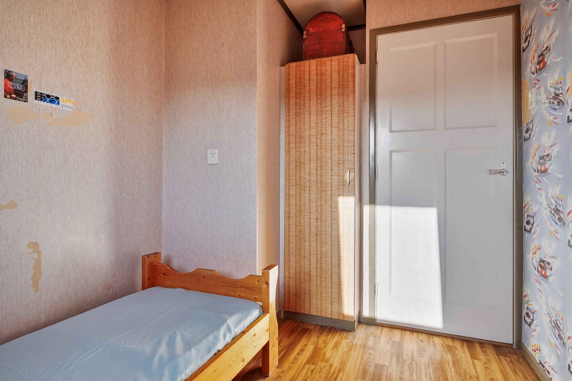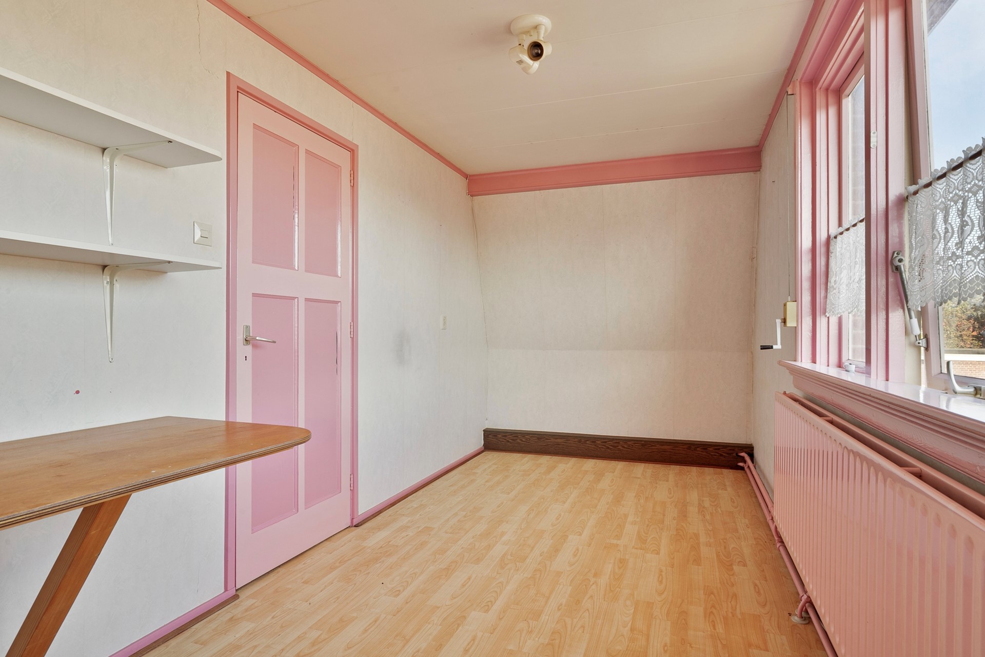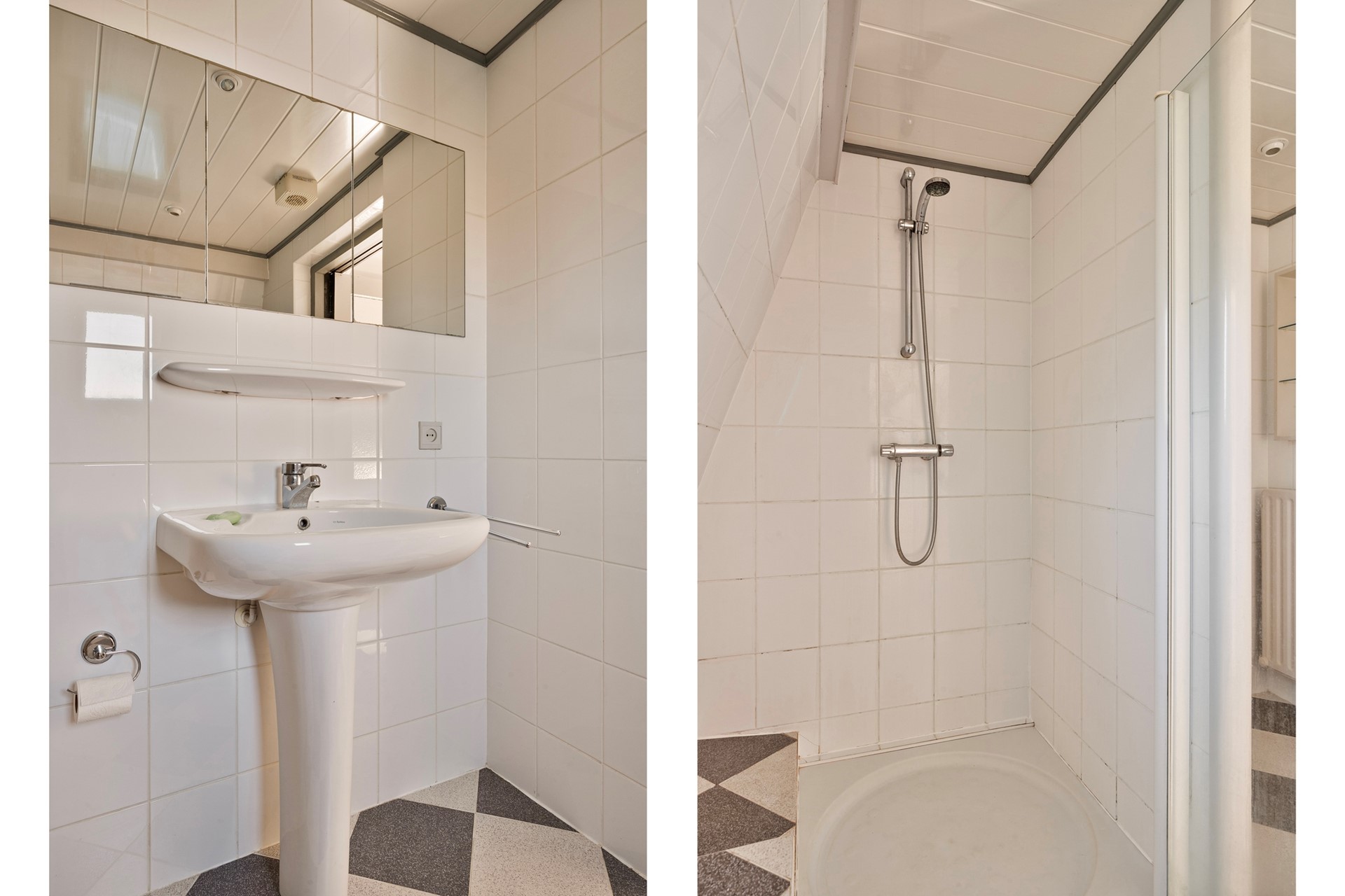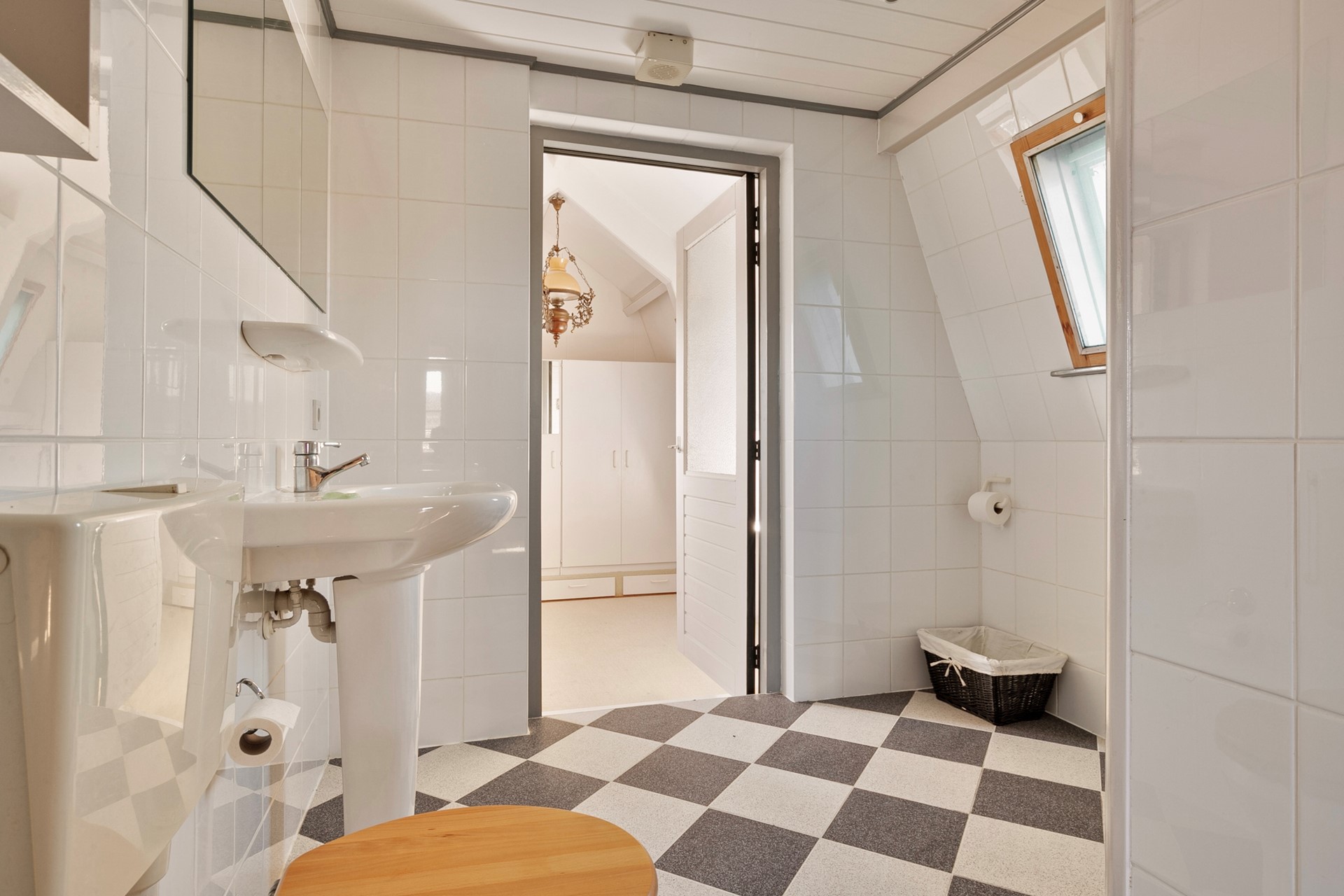 Overloop met vaste bergkast. Slaapkamer aan de voorzijde van de woning, gesitueerd over de gehele breedte van de woning. Tweede kamer aan de linkerzijde van de woning en de derde slaapkamer aan de achterzijde van de woning. De ruime badkamer is uitgevoerd in een lichte kleurstelling en voorzien van een aparte douche, tweede toilet en wastafel. Achter de badkamer ligt een vierde kamer. Deze is heerlijk licht en hoog doordat de kamer open is tot in de nok.