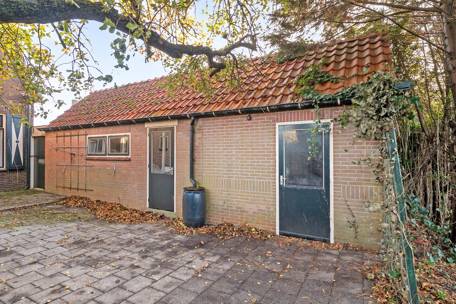 Naast de woning bevindt zich een carport met daarachter een stenen vrijstaande garage. Ideaal voor het stallen van de auto, een motor of om te gebruiken als grote berging. Aangebouwd bevindt zich tevens een tweede berging. De tuin, meer dan 30 meter diep (!), is op dit moment grotendeels nog aan te leggen maar biedt talloze mogelijkheden. Bovendien ligt de achtertuin fantastisch vrij door de ligging direct achter de zeedijk. De achtertuin is ook via een poort aan de zijkant van de woning bereikbaar.